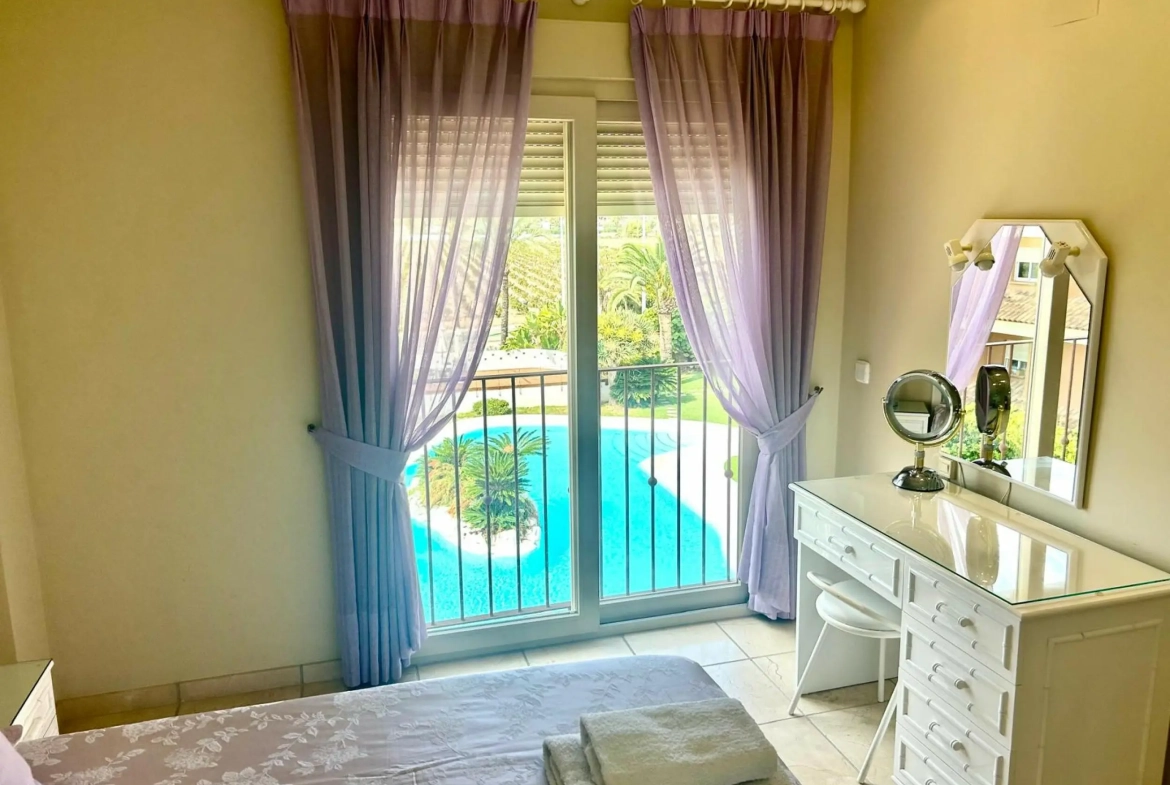 Step through the entrance into an expansive open-plan living and dining area, where floor-to-ceiling sliding doors frame breathtaking southward views toward the iconic Peñón de Ifach in Calpe and the majestic Bernia mountain range. The living space features an authentic working fireplace, creating a cozy ambiance for cooler evenings, while the generous balcony effortlessly accommodates al fresco dining for the whole family.