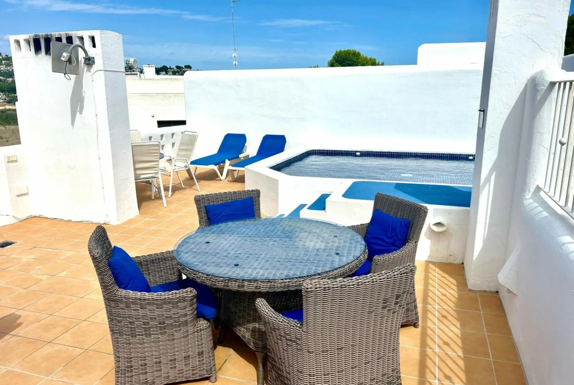 Discover luxury living in this exceptional 2-bedroom, 2-bathroom penthouse featuring a private solarium and plunge pool, perfectly positioned in the heart of Moraira.*